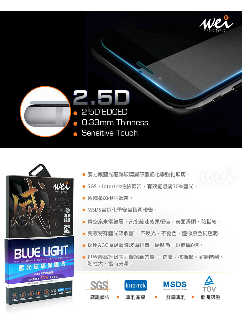 .膜力威藍光龍跡玻璃屬矽酸鋁化學強化玻璃