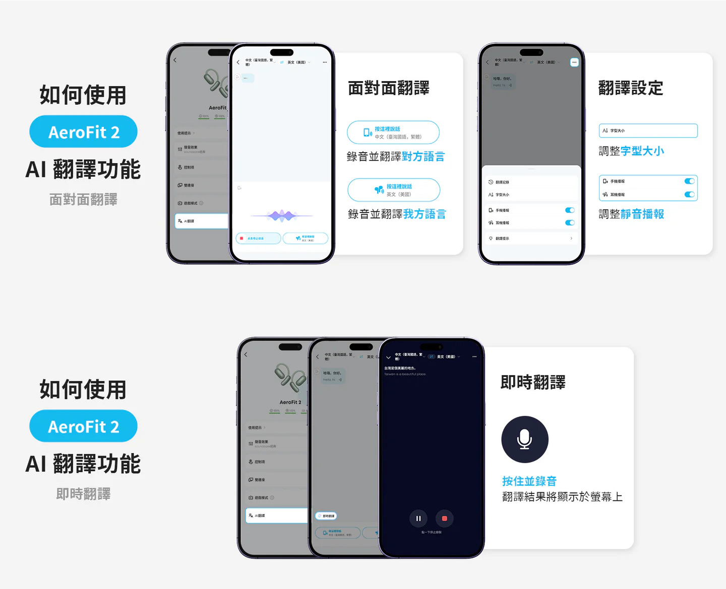內建 100+ 種語言翻譯,提供面對面與即時翻譯功能,溝通無隔閡。