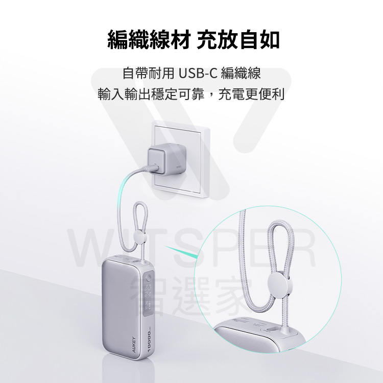 自帶 USB-C 編織線,不僅更耐用,更方便隨時充電,不怕忘記帶線