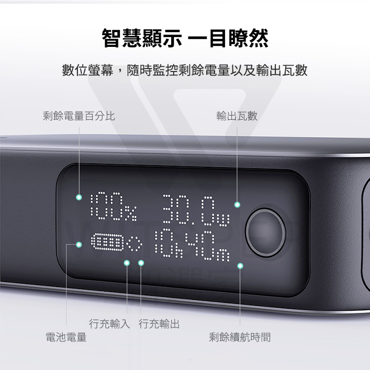數位螢幕,隨時監控行動電源剩餘電量以及輸出瓦數