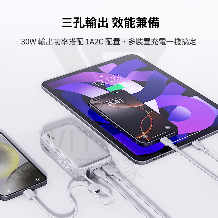 30W 輸出搭配自帶 USB-C 線 1A2C 配置,多裝置充電一機搞定