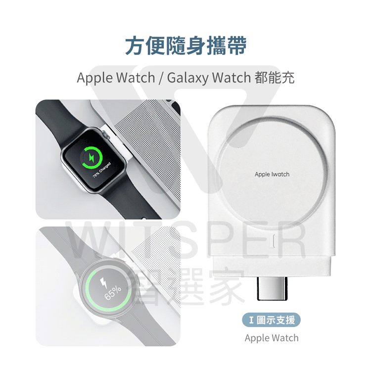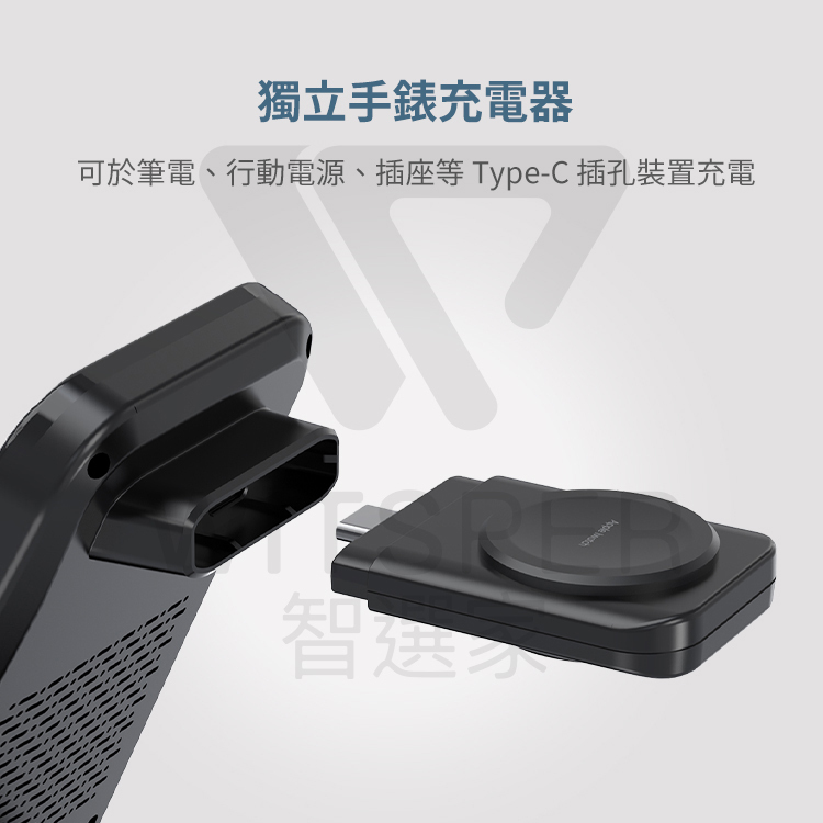 兩用插頭 一拆就走:手錶充電器為可拆卸設計,輕鬆外接到筆電/充電頭上,外出旅遊好攜帶