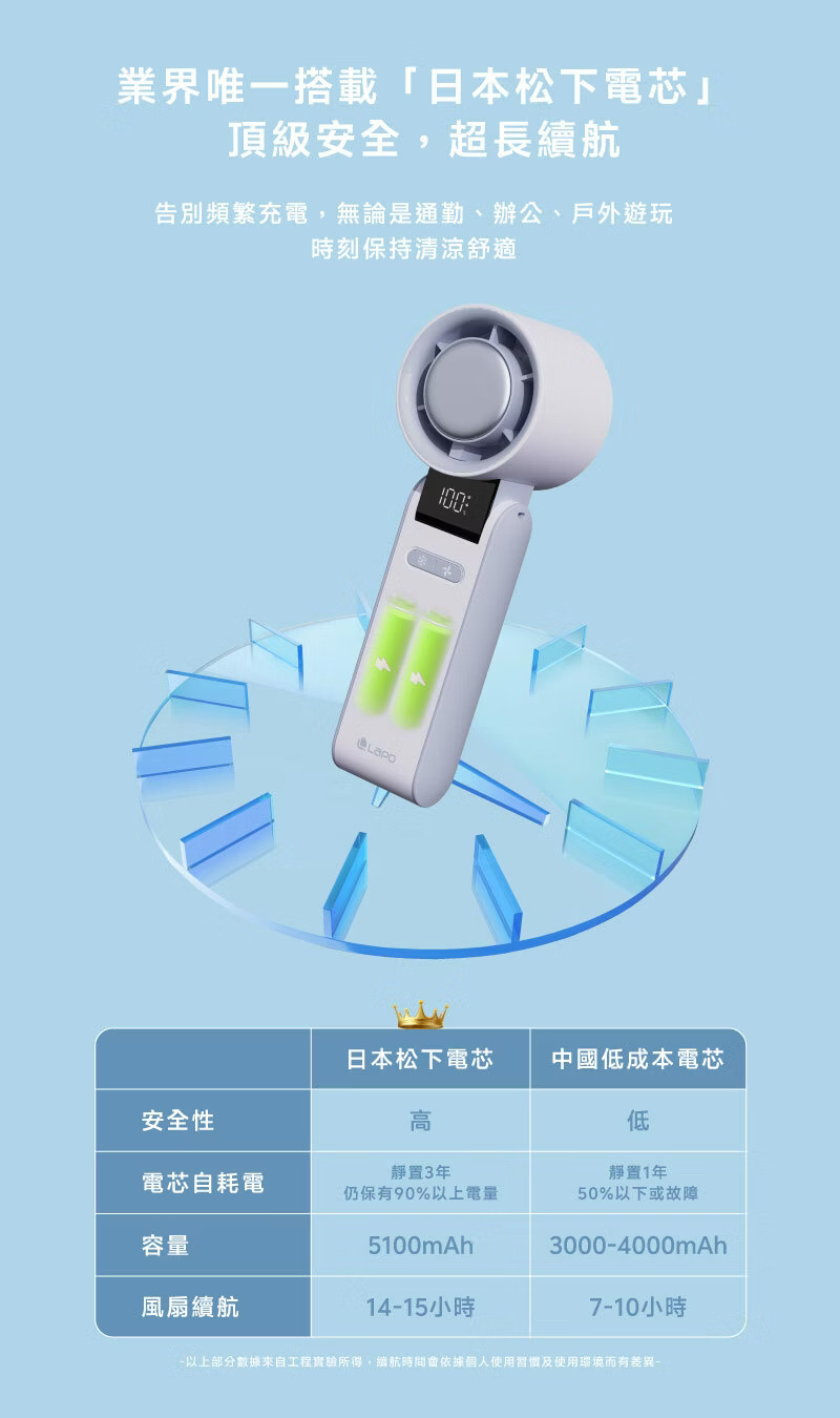 ・使用日本松下高品質電芯,5100mAh大電量,超長續航