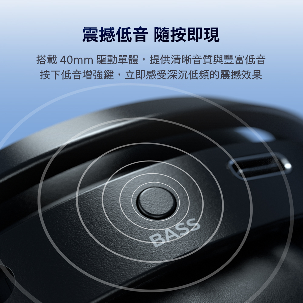 40mm 驅動單體,搭配 BASS 低音增強按鍵,立即感受震撼