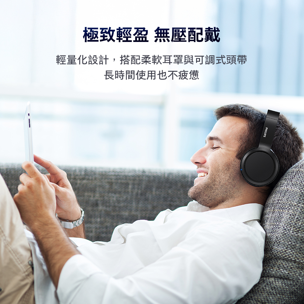 輕量化設計,搭配柔軟耳罩與可調式頭帶,久戴不累