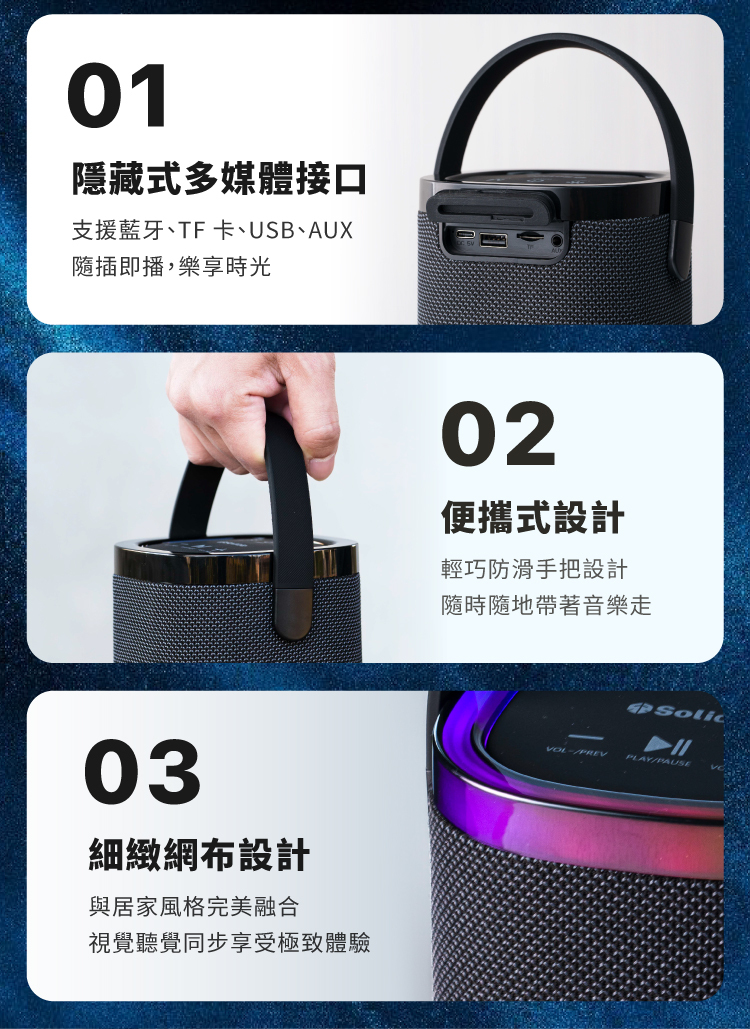 多模式播放:支援MP3、TF卡、USB、AUX輸入及藍牙5.3