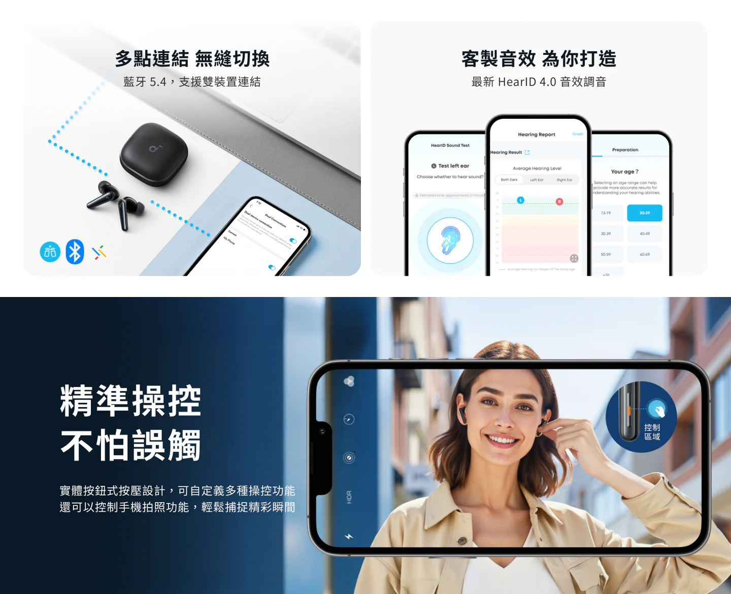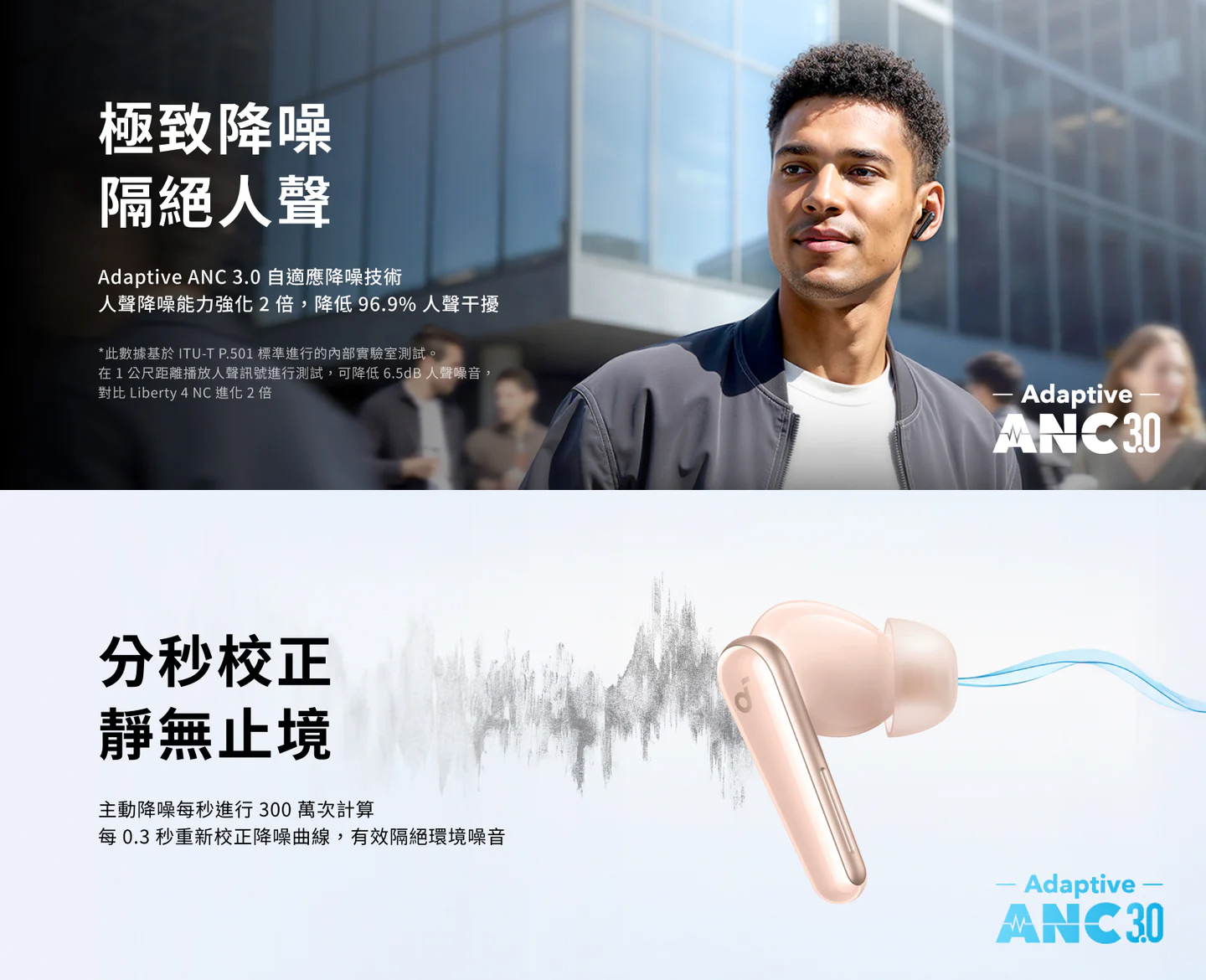 Adaptive ANC 3.0 自適應降噪技術,人聲降噪能力強化 2 倍,降低 96.9% 人聲干擾