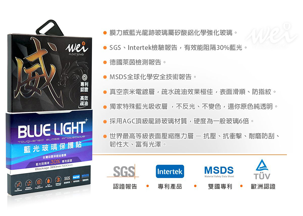 .膜力威藍光龍跡玻璃屬矽酸鋁化學強化玻璃