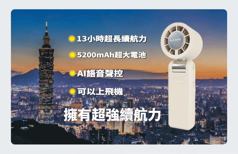 超長續航+即時電量顯示:搭載大容量電池,最高可達 15 小時續航(低檔無製冷模式)