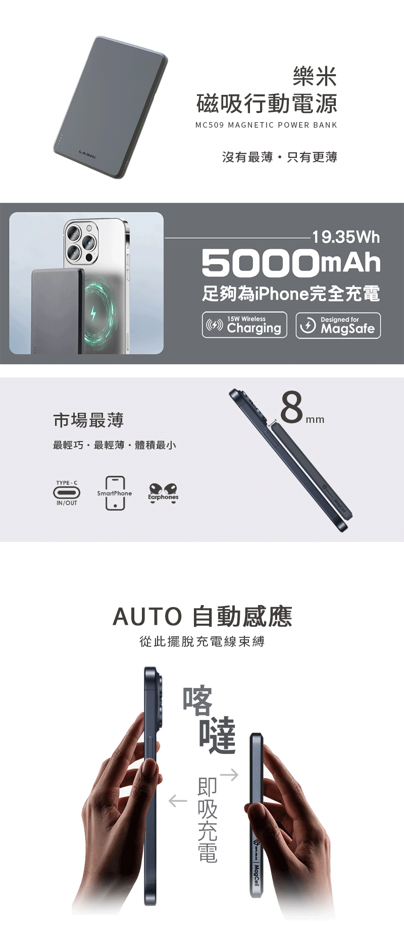 5000mAh 19.35Wh 足夠為iPhone完全充電