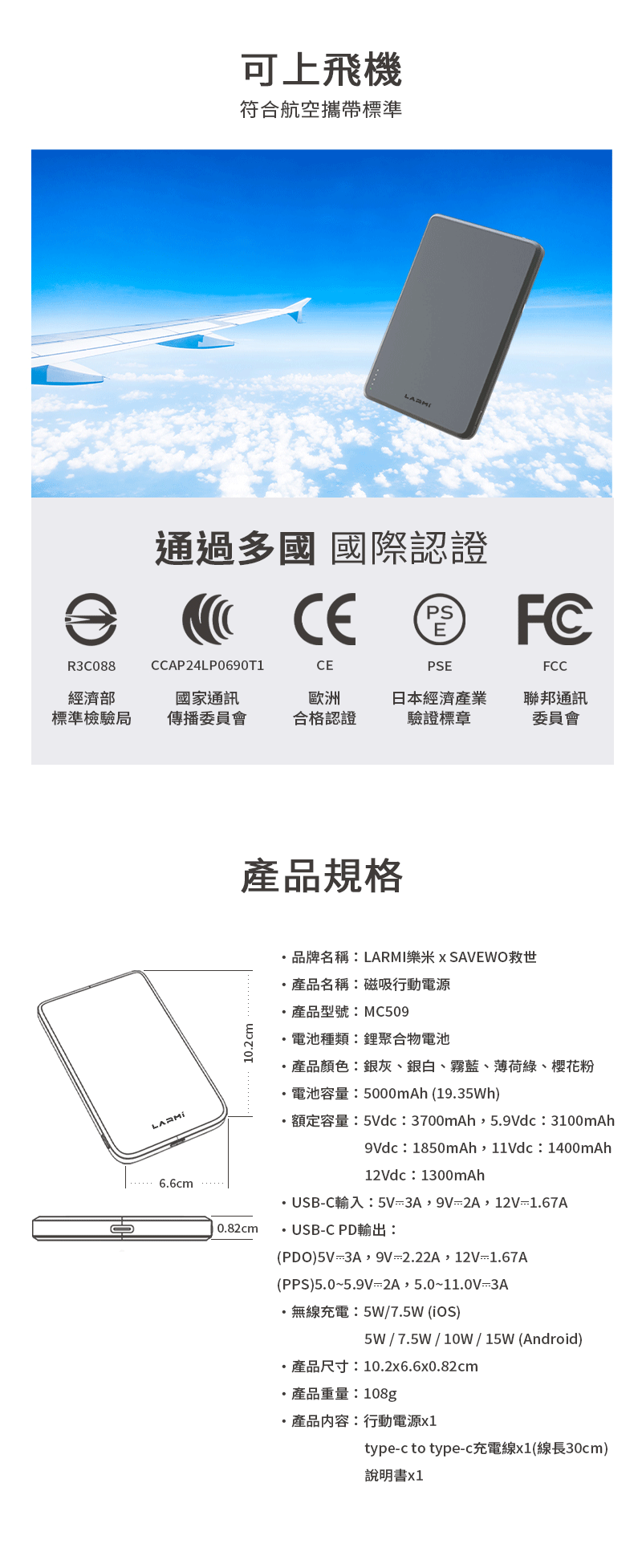 通過 PSE / CE / FCC / UL / BSMI / NCC多項認證