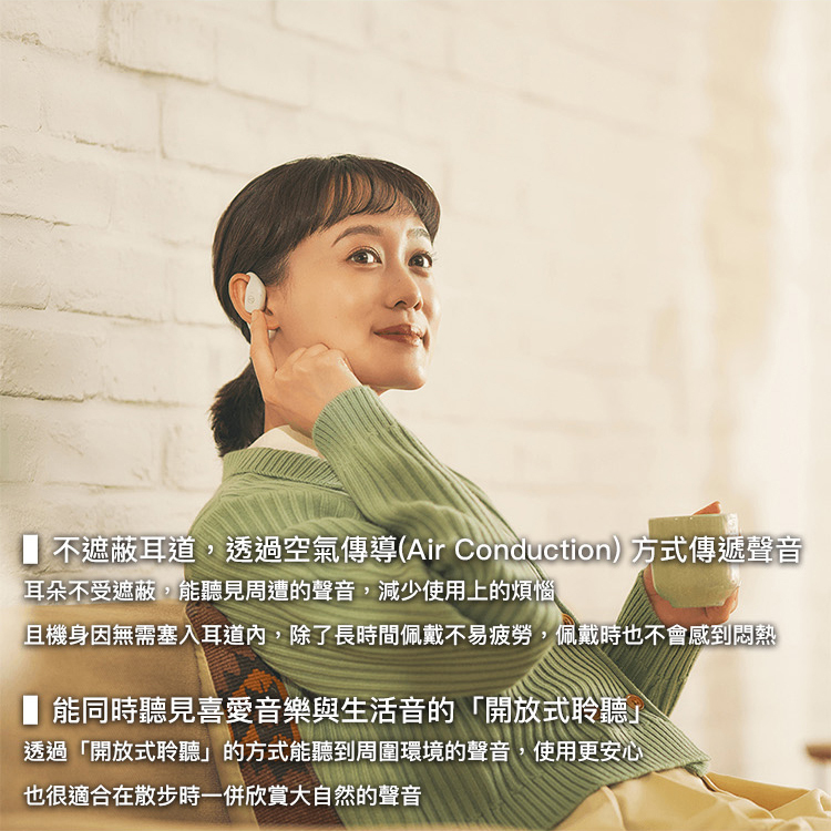 不遮蔽耳道,透過空氣傳導(Air Conduction)方式傳遞聲音