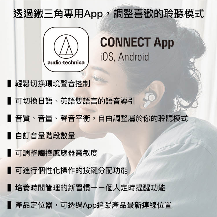 透過鐵三角專用App「Connect」可調整喜歡的聆聽模式及個人化設定